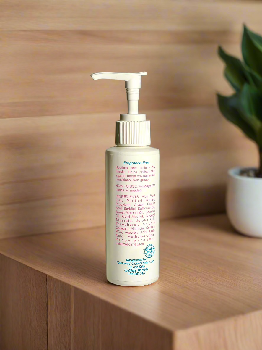 Pamper your hands with lasting moisture and relief from environmental stressors. This specially formulated hand crème is enriched with aloe vera, Vitamin E, jojoba oil, allantoin, and collagen—nourishing and restoring your skin with every application.