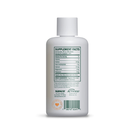 Our Organic Aloe Vera Juice is made from 100% pure, organic inner leaf fillet — never reconstituted from powder or concentrate. Each bottle delivers at least 10% naturally occurring polysaccharides to support digestion, immune function, and nutrient absorption. We add only a small amount of organic citric acid (0.2–0.6%) as a natural preservative — with no artificial additives or powders — which means a shorter shelf life but exceptional purity and freshness. Every batch is third-party tested to ensure the highest quality and guaranteed biological activity. Every bottle meets and surpasses the International Aloe Science Council's rigorous purity standards, ensuring you recieve the finest quality aloe vera juice available.